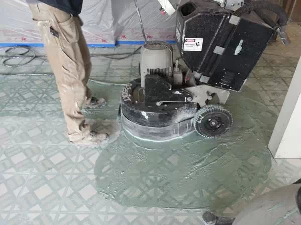 Concrete Polishing Systems公司的員工從來沒有見過這種地磚,看起來像是預(yù)制混凝土和一種骨料的結(jié)合。最大的挑戰(zhàn)是這種地磚的復(fù)雜圖案,任何研磨都會把表面的圖案磨掉露出下面的素混凝土。在地磚上做了一些樣板試驗后,承包方?jīng)Q定接受這個挑戰(zhàn)。